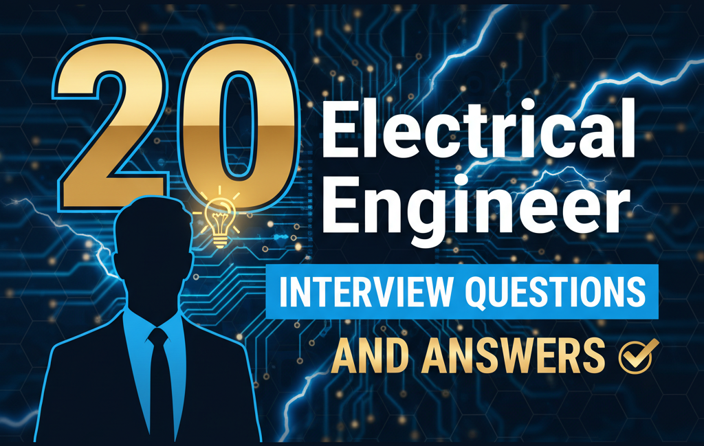 Top 20 electrical engineering interview Q&As on Ohm’s Law, AC/DC, transformers, motors, circuits, and industrial automation